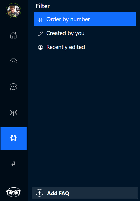 You can create FAQ from left menu of the dashboard by selecting 'FAQ'. Or you can create an FAQ when you are talking with a visitor using the question they asked as the basis for the FAQ. Convenient, right? When creating an FAQ please write detailed questions and offer detailed answers. The question should make sense on it's own regardless of the page content. Also tag an FAQ with relevant keywords