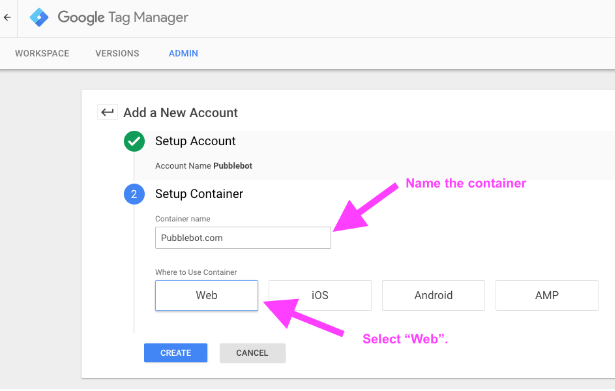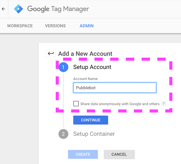 If you are reading this guide, we are assuming that you are already using Google Tag Manager. If you're not and wish to use Google Tag Manager to deploy Pubble Live Chat, then you will first need to create a Google Tag Manager Account and set-up a container. Brief instructions on how complete this are as follows:
